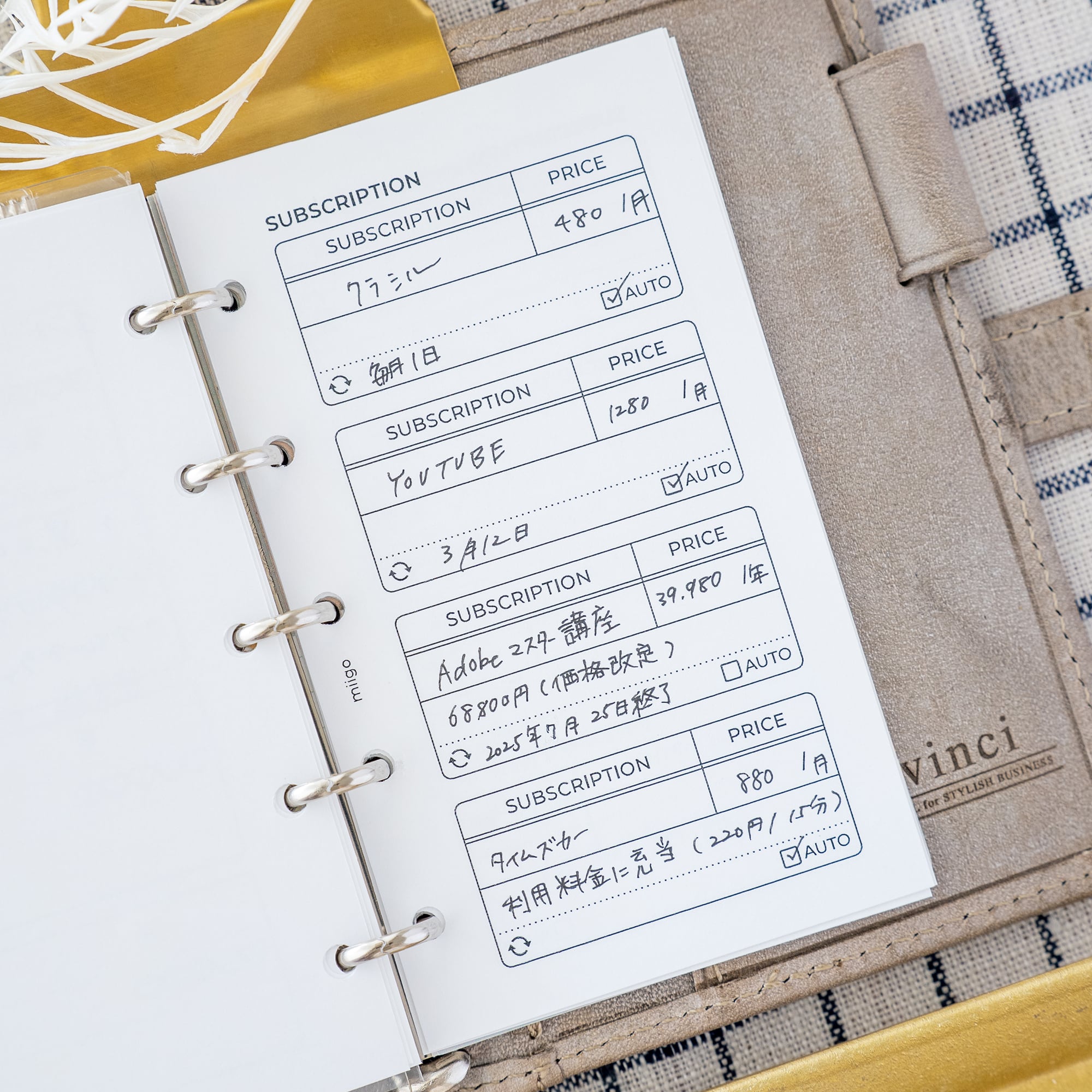 手動更新の契約があったり、契約していることを忘れてしまったりと管理できていなかったので、リフィルを作りました。