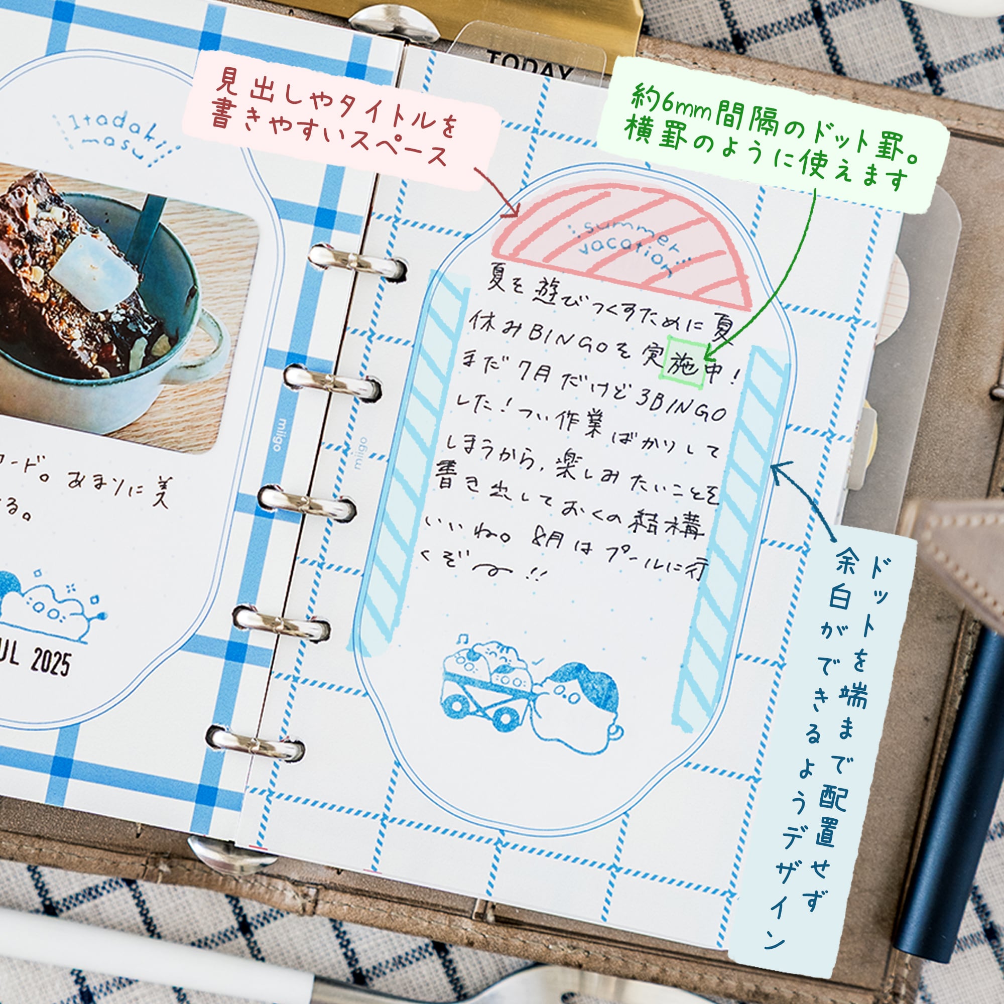 ◎ ドット罫は約6mm間隔で配置し、罫線のように使えるようにしました。