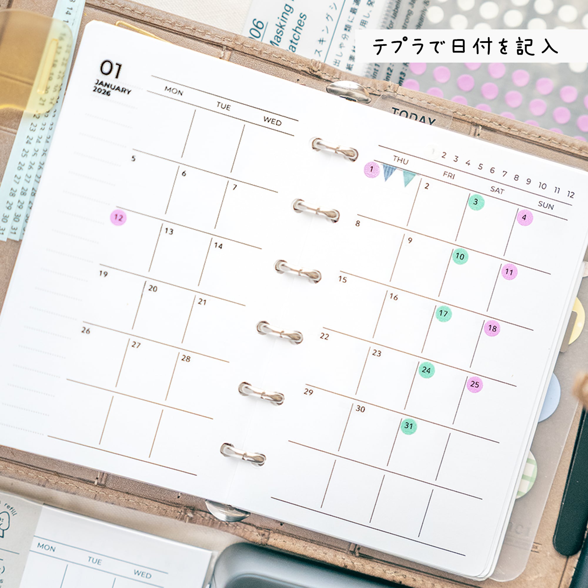 左側上部に少しスペースをとってあるので、テプラなどで月や年を入れられます。